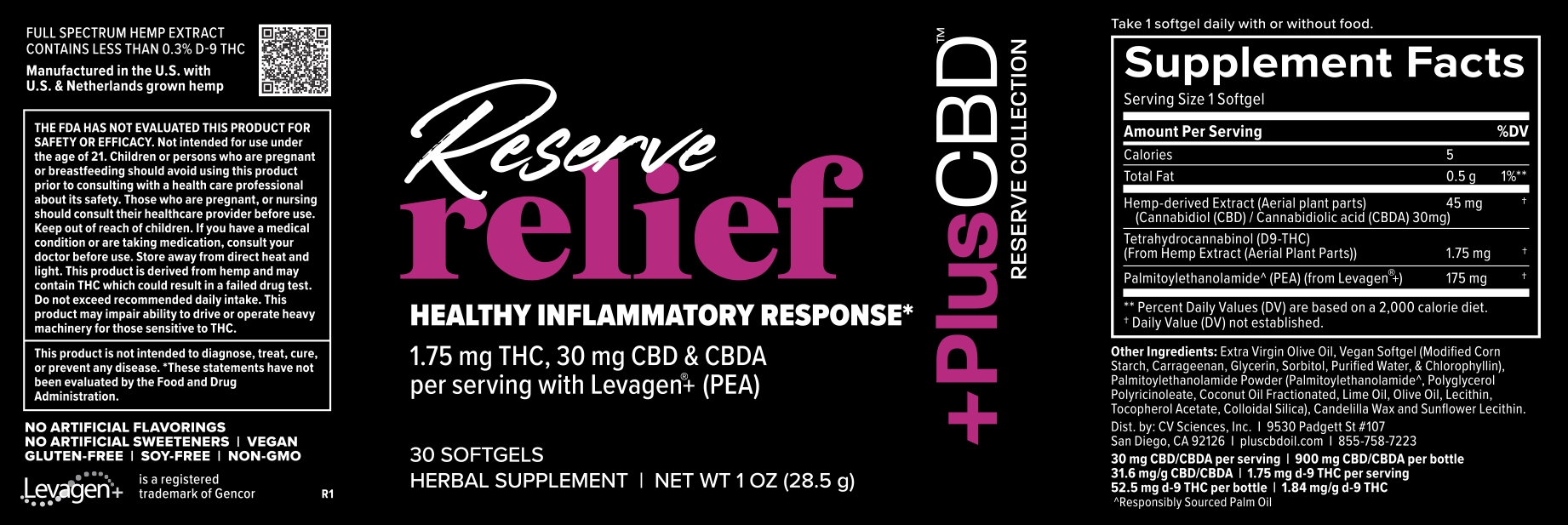 Certificate of Analysis: +PlusCBD Reserve Relief Softgels 30mg 30ct