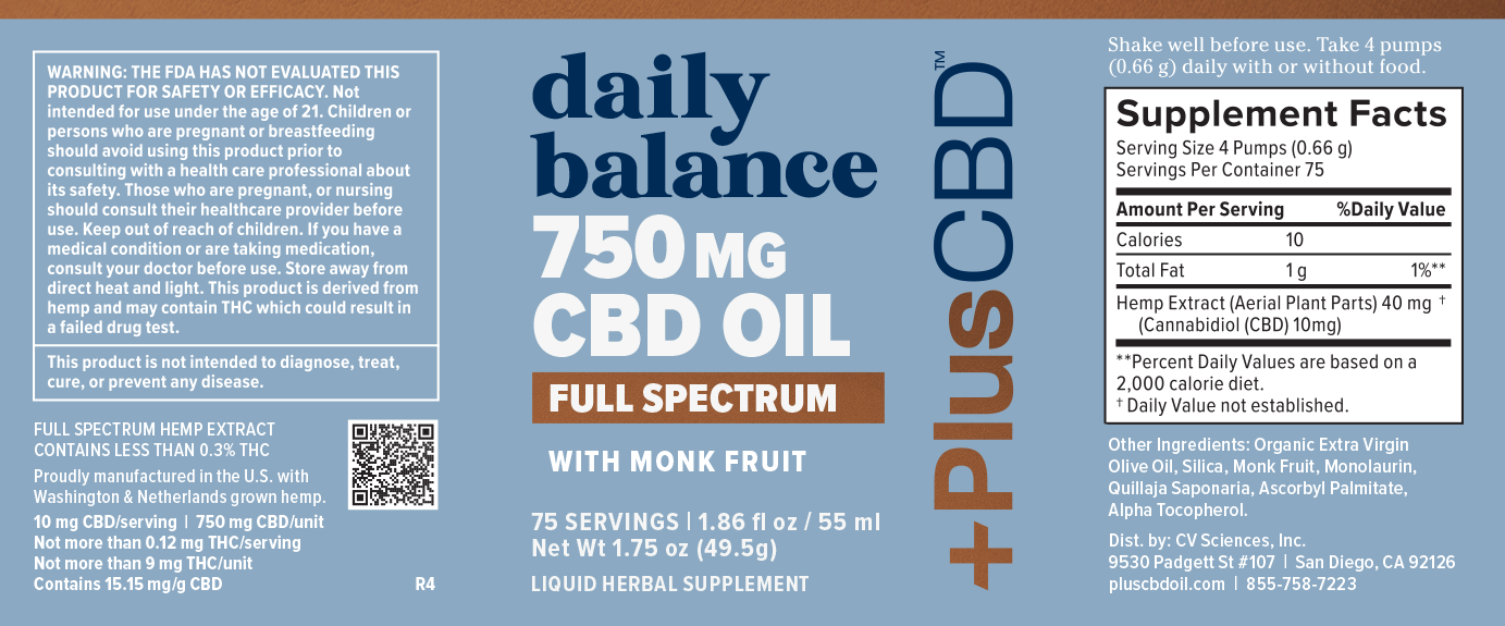 PlusCBD™ Extra Strength Liquid - 10 mg with Monk Fruit 1.86 fl oz 750 mg